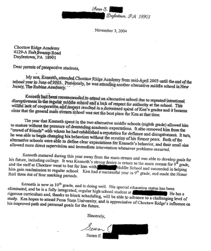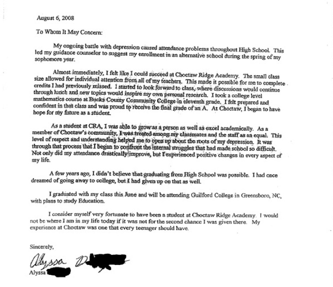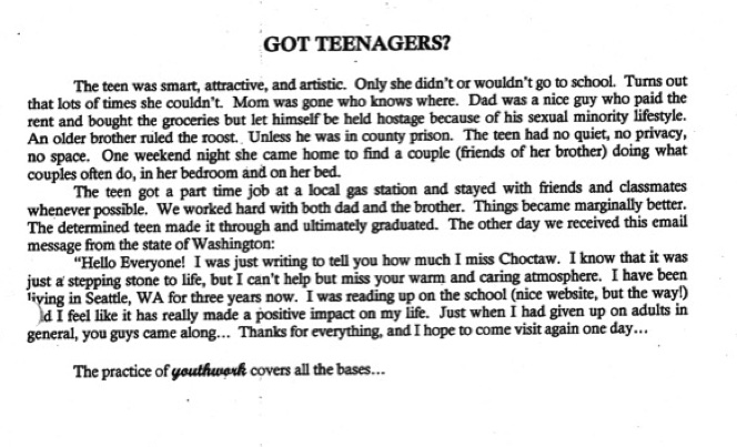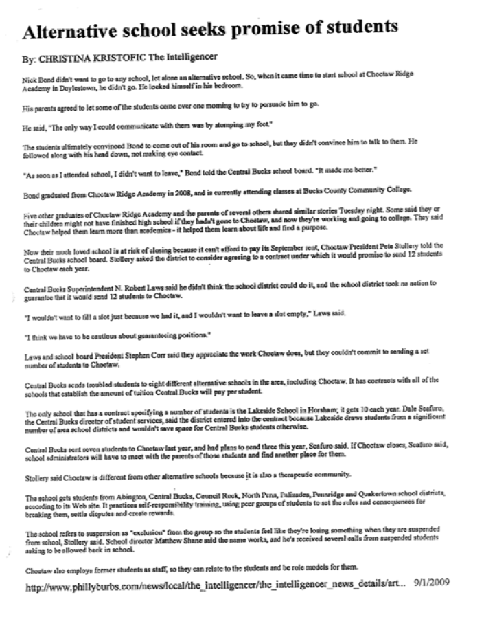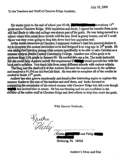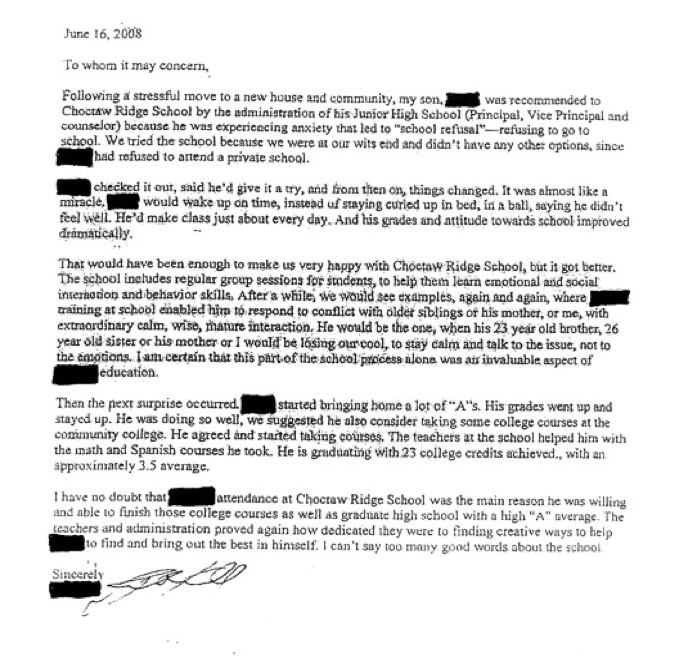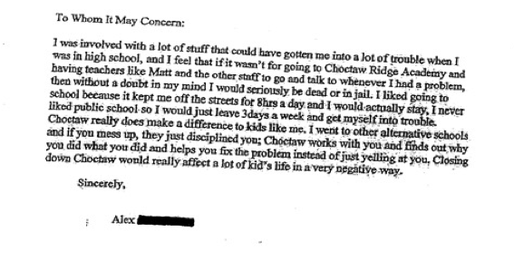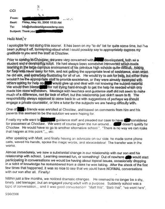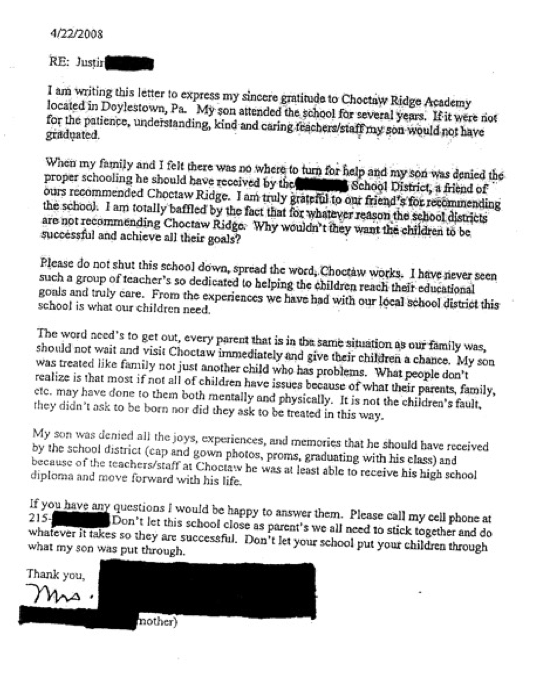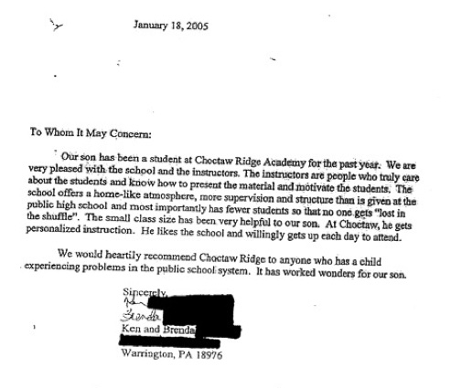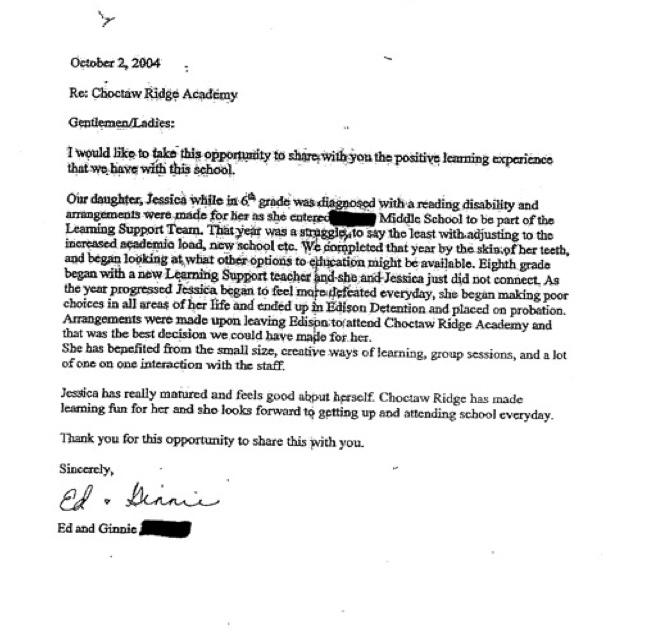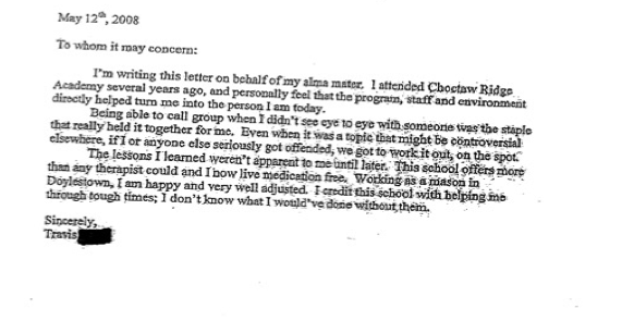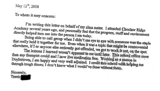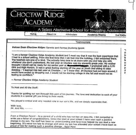 THE FOLLOWING ARE REACTIONS FROM BOTH PARENTS AND FORMER STUDENTS ABOUT THEIR EXPERIENCES WITH CHOCTAW RIDGE ACADEMY.